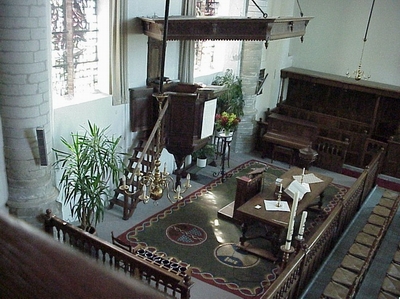 Vanaf de orgelbalustrade hebben we een mooi overzicht over het liturgisch centrum van de kerk, ook wel de tuin genoemd.